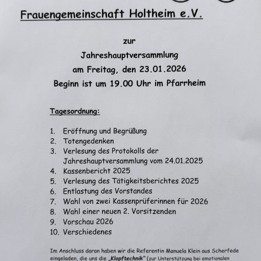 Alle Holtheimer Kinder laden wir mit ihren Familien zum Martinszug am 07.11.2025 ein. Treffpunkt: 18 Uhr Kirche Holtheim. Zum Abschluss gibt es […]