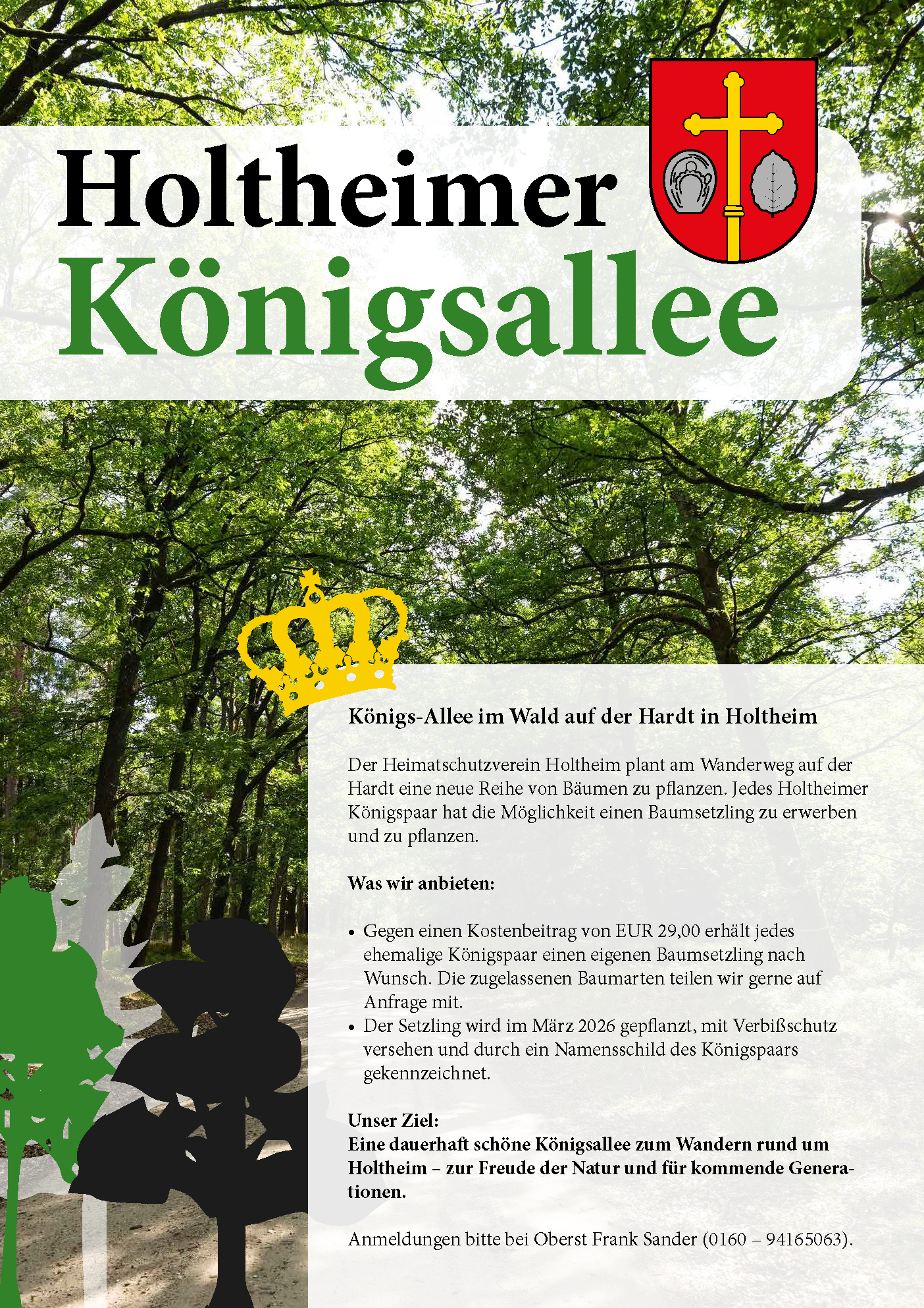 Der Heimatschutzverein Holtheim plant am Wanderweg auf der Hardt eine neue Reihe von Bäumen zu pflanzen. Jedes Holtheimer Königspaar hat die Möglichkeit einen Baumsetzling zu […]