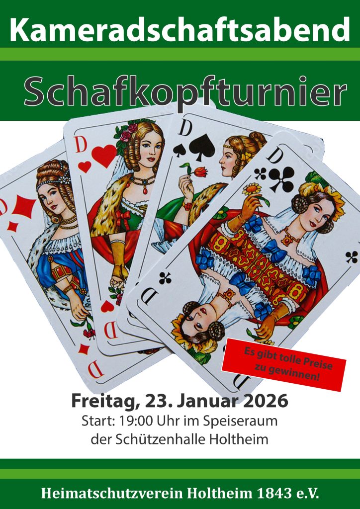 Herzliche Einladung für alle: Schafkopfturnier in der Holtheimer Schützenhalle am 23.01.2026