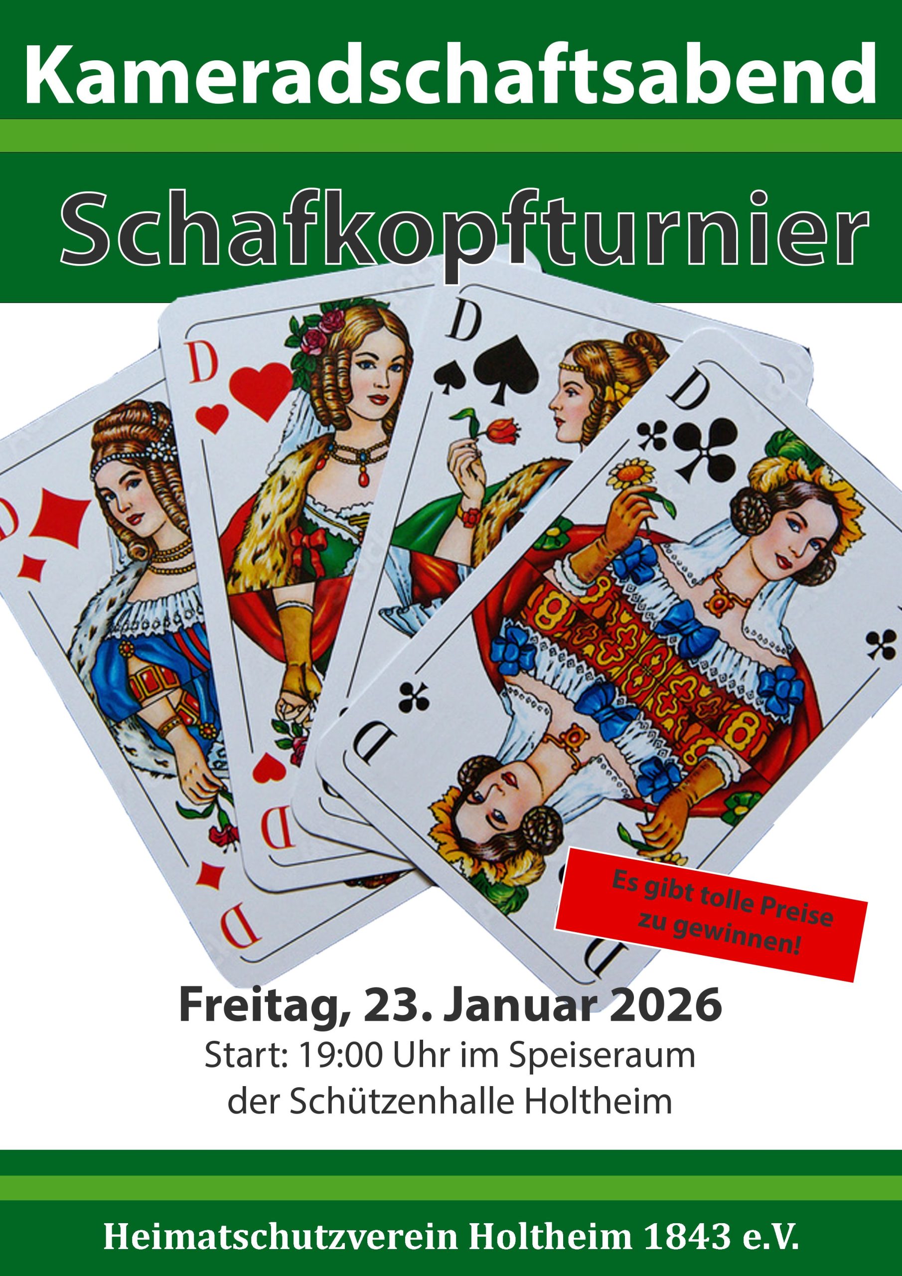 Heimatschutzverein News Schützenjahr 2026 Herzliche Einladung für alle: Schafkopfturnier in der Holtheimer Schützenhalle am 23.01.2026